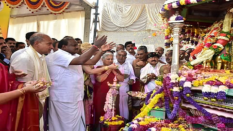 ನಾನು ಮೂಲತಃ ರಾಜಕಾರಣಿಯಲ್ಲ, ನಾನು ರಾಜಕಾರಣಿ ಆಗಲು ಬರಲಿಲ್ಲ ಈ ಹಿಂದೆ ಆಕಸ್ಮಿಕವಾಗಿ ಮುಖ್ಯಮಂತ್ರಿ ಆಗಿದ್ದೆ, ಈಗಲೂ ಎರಡನೇ ಬಾರಿ ಆಕಸ್ಮಿಕವಾಗಿ ಆಗಿದ್ದೇನೆ.ತಾಯಿ ಚಾಮುಂಡೇಶ್ವರಿ ಸನ್ನಿಧಿಯಲ್ಲಿ ಒಂದು ಮಾತನ್ನು ಹೇಳುತ್ತೇನೆ, ರಾಜ್ಯದ ರೈತರು ಸೇರಿದಂತೆ ಸಾಲ ಮಾಡಿರುವ ಯಾರು ಆತ್ಮಹತ್ಯೆ ಮಾಡಿಕೊಳ್ಳಬೇಡಿ, ಇದು ನಿಮ್ಮ ಸರ್ಕಾರ. ಪ್ರತಿಯೊಂದು ಕುಟುಂಬವನ್ನು ಉಳಿಸುವ ಜವಾಬ್ದಾರಿ ನಮ್ಮದು. ಪ್ರತಿಯೊಂದು ಕುಟುಂಬ ನೆಮ್ಮದಿಯಾಗಿ ಬದುಕಲು ಹಲವು ಯೋಜನೆ ತರಲಿದ್ದೇನೆ ಆತ್ಮಹತ್ಯೆ ಮಾಡಿಕೊಂಡು ನಿಮ್ಮ ಕುಟುಂಬವನ್ನು ಅನಾಥ ಮಾಡಬೇಡಿ ಎಂದು ಮನವಿ ಮಾಡಿಕೊಂಡರು.