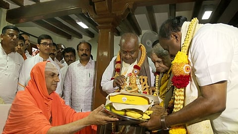 ಇದಕ್ಕೂ ಮುನ್ನ ಮುಖ್ಯಮಂತ್ರಿ ಕುಮಾರಸ್ವಾಮಿ ಸುತ್ತೂರು ಶಿವರಾತ್ರಿ ದೇಶಿಕೇಂದ್ರ ಮಹಾ ಸ್ವಾಮೀಜಿಯವರನ್ನು ಭೇಟಿಯಾಗಿ ಆಶೀರ್ವಾದ ಪಡೆದರು. ಈ ಸಂದರ್ಭದಲ್ಲಿ ಮಾಜಿ ಪ್ರಧಾನಿ ಹೆಚ್ ಡಿ ದೇವೇಗೌಡ ಮತ್ತು ಅವರ ಪತ್ನಿ ಚೆನ್ನಮ್ಮ ಕೂಡ ಶ್ರೀಗಳಿಂದ ಆಶೀರ್ವಾದ ಪಡೆದರು.