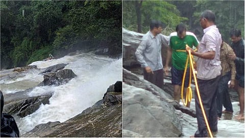 ಶನಿವಾರ ಮಧ್ಯಾಹ್ನ ಈ ಘಟನೆ ನಡೆದಿದ್ದು ಪ್ರಾಣಾಪಾಯದಿಂದ ಪಾರಾದ ಯುವಕನನ್ನು ನಿಖಿಲ್ ಎಂದು ಗುರುತಿಸಲಾಗಿದೆ. ಆತ ತನ್ನ ಕುಟುಂಬ, ಸ್ನೇಹಿತರೊಡನೆ ಜಲಪಾತದ ಸುಂದರ ದೃಶ್ಯವನ್ನು ಸವಿಯಲು ಆಗಮಿಸಿದ್ದನು.
