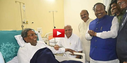ಬೆಂಗಳೂರು: ಅನಾರೋಗ್ಯದ ಕಾರಣ ಖಾಸಗಿ ಆಸ್ಪತ್ರೆಯಲ್ಲಿ ಚಿಕಿತ್ಸೆ ಪಡೆಯುತ್ತಿರುವ ಸಿದ್ದಾರಾಮಯ್ಯ ಅವರನ್ನು ಸಿಎಂ ಯಡಿಯೂರಪ್ಪ, ಸಚಿವ ಈಶ್ವರಪ್ಪ ಭೇಟಿ ಮಾಡಿ ಆರೋಗ್ಯ ವಿಚಾರಿಸಿದ್ದಾರೆ.