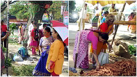 ಮಾರುಕಟ್ಟೆಯಲ್ಲಿ ಇಂದು ಬೆಳಗ್ಗೆಯೂ ಹೂವು-ಹಣ್ಣು. ತರಕಾರಿಗಳು, ಕಬ್ಬುಗಳ ಮಾರಾಟ ಕಂಡುಬಂತು.