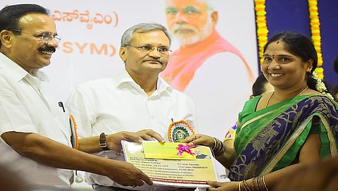 ಈ ಯೋಜನೆಯಡಿ ಯಾವುದೇ ಕೆಲಸ ಇಲ್ಲದ ಕಾರ್ಮಿಕರಿಗೂ 60 ವರ್ಷ ಪೂರ್ಣಗೊಳಿಸಿದ ನಂತರ ಕನಿಷ್ಠ ಪಿಂಚಣಿ ಸೌಲಭ್ಯದ ಖಾತ್ರಿ ಒದಗಿಸಲಾಗುತ್ತಿದೆ. ಇಎಸ್ ಐ ಅಥವಾ ಪಿಎಫ್ ಸೌಲಭ್ಯ ಇಲ್ಲದೆ ಪ್ರತಿ ತಿಂಗಳು 15 ಸಾವಿರಕ್ಕಿಂತಲೂ ಕಡಿಮೆ ಆದಾಯ ಗಳಿಸುತ್ತಿರುವವರು ಇದರ ಪ್ರಯೋಜನ ಪಡೆದುಕೊಳ್ಳಬಹುದು ಎಂದು ತಿಳಿಸಿದರು.