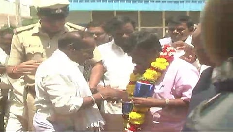 ತುಮಕೂರು: ದಲಿತರಿಗೆ ಪ್ರವೇಶ ನಿರಾಕರಿಸಿ ದೇಶದೆಲ್ಲೆಡೆ ಚರ್ಚೆಗೆ ಗ್ರಾಸವಾಗಿದ್ದ ಗ್ರಾಮಕ್ಕೆ ಇಂದು ಚಿತ್ರದುರ್ಗ ಸಂಸದ ನಾರಾಯಣಸ್ವಾಮಿ ಅದ್ಧೂರಿ ಸ್ವಾಗತದೊಂದಿಗೆ ಪ್ರವೇಶಿಸಿದ್ದಾರೆ.