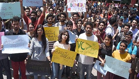 ಎರಡು ತಿಂಗಳಿನಿಂದ ಖಾಲಿಯಿರುವ ಕುಲಪತಿ ಹುದ್ದೆಯನ್ನು ಭರ್ತಿ ಮಾಡುವಂತೆ ಒತ್ತಾಯಿಸಿ ನಾಲ್ಕು ದಿನಗಳಿಂದ ವಿದ್ಯಾರ್ಥಿಗಳು ಪ್ರತಿಭಟನೆ ನಡೆಸುತ್ತಿದ್ದರು. ಎನ್ಎಲ್ಎಸ್ಐನ ಸ್ಟೂಡೆಂಟ್ ಬಾರ್ ಅಸೋಸಿಯೇಷನ್ ನೇತೃತ್ವದಲ್ಲಿ ವಿದ್ಯಾರ್ಥಿಗಳು ತರಗತಿ ಹಾಗೂ ಪರೀಕ್ಷೆಯನ್ನು ಬಹಿಷ್ಕರಿಸಿ ಧರಣಿ ನಡೆಸಿದ್ದರು.