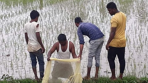 ತೋಟ, ನಾಟಿ ಮಾಡಿದ ಹೊಲಗದ್ದೆಗಳಲ್ಲಿ ಮೀನುಗಾರಿಕೆ ಮಾಡುವ ವಿಧಾನ ಇದೀಗ ಅಸ್ತಿತ್ವಕ್ಕೆ ಬಂದಿದೆ. ಇದು ಹೇಗೆಲ್ಲಾ ಸಾಧ್ಯ ಎನ್ನುವುದು ಕುತೂಹಲ ಇದ್ದರೆ ಈ ಸ್ಟೋರಿಯನ್ನೊಮ್ಮೆ ನೋಡಿ. ನಿಮಗೆ ಗೊತ್ತಾಗುತ್ತದೆ. ಹೌದು ಇದೀಗ ಗಂಗಾವತಿ ತಾಲ್ಲೂಕಿನಲ್ಲಿ ರೈತರು ತಮ್ಮ ಹೊಲಗದ್ದೆಗಳಲ್ಲಿಯೂ ಮೀನು ಹಿಡಿಯುತ್ತಿದ್ದಾರೆ.