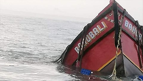 ಉಡುಪಿ: ಮಲ್ಪೆ ಬಂದರಿನಿಂದ ಆಳ ಸಮುದ್ರದ ಮೀನುಗಾರಿಕೆಗೆ ತೆರಳಿದ್ದ ಯಾಂತ್ರಿಕೃತ ಮೀನುಗಾರಿಕಾ ದೋಣಿ ಬುಧವಾರ ಎರಡು ನಾಟಿಕಲ್ ಮೈಲಿ ದೂರದಲ್ಲಿ ಮಗುಚಿದೆ.