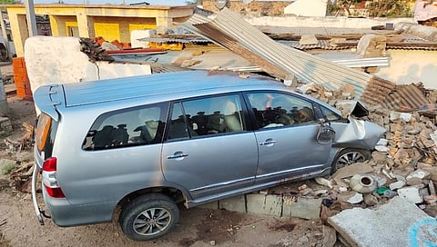 ವಿಜಯಪುರ: ಸೋಮವಾರ ನಸುಕಿನ ವೇಳೆ ಚಾಲಕನ ನಿಯಂತ್ರಣ ತಪ್ಪಿದ ಇನ್ನೋವಾ ಕಾರೊಂದು ಮನೆಗೆ ನುಗ್ಗಿದ ಘಟನೆ ವಿಜಯಪುರ ಜಿಲ್ಲೆ ಮುದ್ದೇಬಿಹಾಳದಲ್ಲಿ ನಡೆದಿದೆ.
