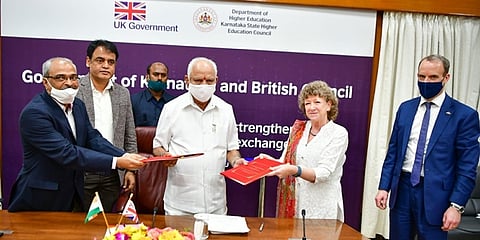 ಬೆಂಗಳೂರು: ಮುಖ್ಯಮಂತ್ರಿ ಬಿ.ಎಸ್. ಯಡಿಯೂರಪ್ಪ ಅವರ ಸಮ್ಮುಖದಲ್ಲಿ ಉನ್ನತ ಶಿಕ್ಷಣ ಸಂಸ್ಥೆಗಳಲ್ಲಿ ದ್ವಿಪಕ್ಷೀಯ ಸಹಕಾರಕ್ಕೆ ಸಂಬಂಧಿಸಿದ ಒಪ್ಪಂದಕ್ಕೆ ರಾಜ್ಯ ಸರ್ಕಾರ ಮತ್ತು ಬ್ರಿಟಿಷ್ ಸರ್ಕಾರದ ನಡುವೆ ಇಂದು ಸಹಿ ಮಾಡಲಾಯಿತು.