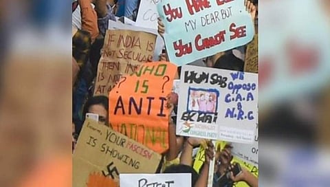 ಎನ್ಆರ್ಸಿ, ಸಿಎಎ ಮತ್ತು ಎನ್ಪಿಆರ್ ಅನ್ನು ತಿರಸ್ಕರಿಸಿ" ಎಂಬ ಫಲಕಗಳನ್ನು ಹಿಡಿದು ಪ್ರತಿಭಟನಾಕಾರರು ಧರಿಣಿಯಲ್ಲಿ ನಿರತರಾಗಿದ್ದಾರೆ.