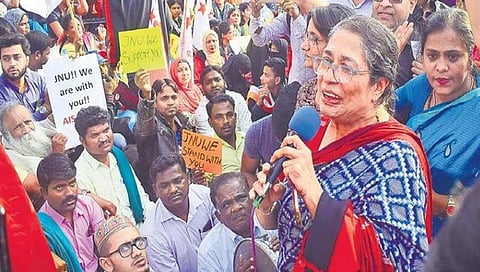 ಭಾನುವಾರ ಸಂಜೆ ಜೆಎನ್'ಯು ಆವರಣದ ಹಾಸ್ಟಲ್ ಗೆ ಕೆಲವು ಕಿಡಿಗೇಡಿಗಳು ನುಗ್ಗಿ ಜೆಎನ್'ಯು ವಿದ್ಯಾರ್ಥಿಗಳ ಸಂಘಟನೆಯ ನಾಯಕಿ ಆಯುಷಿಘೋಷ್ ಅವರ ಮೇಲೆ ಮಾರಣಾಂತಿಕ ಹಲ್ಲೆ ನಡೆಸಿದ್ದರು. ಇದನ್ನು ಖಂಡಿಸಿ ನಗರದ ಪುರಭವನದ ಮುಭಾಗದ ಎಸ್ಎಫ್ಐ, ಎಐಡಿಎಸ್ಓ, ವಿವಿಧ ಸಂಘಟನೆಗಳ ಕಾರ್ಯಕರ್ತರು ವಿದ್ಯಾರ್ಥಿಗಳು ರಂಗಕರ್ಮಗಿಳು, ಪುರಭವನದ ಎದುರು ಧರಣಿ ನಡೆಸಿದರು, ಕೋಡಿಹಳ್ಳಿ ಚಂದ್ರಶೇಖರ್, ನಟಿ ಅರುಂಧತಿ ನಾಗ್ ಅವರು ಪ್ರತಿಭಟನೆಯಲ್ಲಿ ಭಾಗಿಯಾಗಿದ್ದರು.
