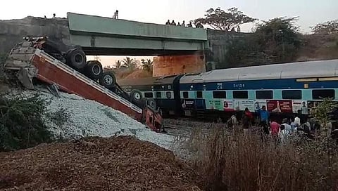 ಚಿಕ್ಕೋಡಿ: ಕಲ್ಲು ತುಂಬಿಕೊಂಡು ಹೊರಟಿದ್ದ ಲಾರಿ ಚಾಲಕನ ನಿಯಂತ್ರಣ ತಪ್ಪಿದ ಹಿನ್ನೆಲೆ ರೈಲ್ವೇ ಹಳಿಯ ಮೇಲೆ ಬಿದ್ದ ಪರಿನಾಮ ಸ್ಥಳದಲ್ಲಿಯೇ ಲಾರಿ ಚಾಲಕ, ಕ್ಲೀನರ್ ಮೃತಪಟ್ಟ ಘಟನೆ ಕಾಗವಾಡ ತಾಲೂಕಿನ ಉಗಾರ ಖುರ್ದ ಗ್ರಾಮದಲ್ಲಿ ನಡೆದಿದೆ