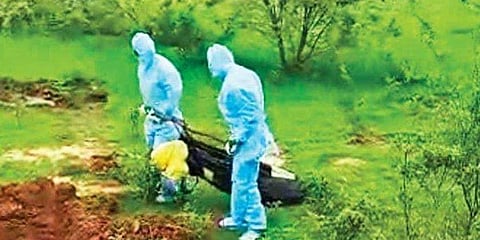 ಆ್ಯಂಬುಲೆನ್ಸ್ ನಿಂದ ಕೆಳಗಿಳಿಸಲ್ಪಟ್ಟ ಶವವನ್ನು ಪಿಪಿಇ ಕಿಟ್ ಧರಿಸಿದ್ದ ಇಲಾಖೆಯ ಸಿಬ್ಬಂದಿ ಗುಂಡಿಯವರೆಗೆ ನೆಲದಲ್ಲೇ ಎಳೆದುಕೊಂಡು ಸುರಿದಿದ್ದಾರೆ. ಅಂತ್ಯಸಂಸ್ಕಾರದ ವೇಳೆ, ಮೃತನ ಕಿರಿಯ ಸಹೋದರನನ್ನು ಹೊರತುಪಡಿಸಿದರೆ, ಉಳಿದ ಸಂಬಂಧಿಕರು ಯಾರೂ ಉಪಸ್ಥಿತರಿರಲಿಲ್ಲ. ಆದರೆ, ಪಶುಗಳಿಗಿಂತಲೂ ಕೀಳಾಗಿ ಮೃತಪಟ್ಟ ಸೋಂಕಿತನ ಅಂತ್ಯಕ್ರಿಯೆ ನಡೆಸಿದ ಪರಿ ಇಲ್ಲಿನ ಜನರನ್ನು ಆತಂಕಕ್ಕೀಡಾಗುವಂತೆ ಮಾಡಿದೆ.