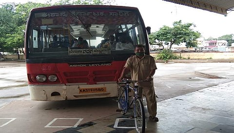 ಕೊಪ್ಪಳ: ಕೊರೊನಾದ ಈ ಕಾಲದಲ್ಲಿ ಎಷ್ಟೋ ಜನ ನೌಕರರು ತಮ್ಮ ಮನೆಯಿಂದ ಕಚೇರಿ ತಲುಪಲು ಬಸ್ ಇಲ್ಲ ಎನ್ನುವ ಕಾರಣಕ್ಕೆ ಕೆಲಸಕ್ಕೆ ಹಾಜರಾಗಲ್ಲ. ಇಂಥವರ ಮಧ್ಯೆ ಯಲಬುರ್ಗಾ ಕೆಎಸ್ಆರ್ಟಿಸಿ ಘಟಕದ ಚಾಲಕ ಕಂ ನಿರ್ವಾಹಕ ನೀಲಪ್ಪ ಎಚ್. 30 ಕಿಮೀ ಸೈಕಲ್ ತುಳಿದು ಕೆಲಸಕ್ಕೆ ಹಾಜರಾಗುವ ಮೂಲಕ ಕರ್ತವ್ಯ ಪ್ರಜ್ಞೆ ಮೆರೆದಿದ್ದಾರೆ.