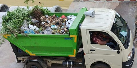 ನಗರದ ಎಲ್ಲಾ 65 ವಾರ್ಡ್ಗಳಿಂದ ತ್ಯಾಜ್ಯವನ್ನು ಸಂಗ್ರಹಿಸುವ ಪೌರಕರ್ಮಿಕರು ರೆಕಾರ್ಡ್ ಮಾಡಿದ ಆಡಿಯೊವನ್ನು ಪ್ಲೇ ಮಾಡುತ್ತಿದ್ದಾರೆ.