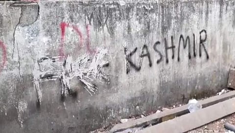 ಬೆಂಗಳೂರು: ಇತ್ತೀಚೆಗಷ್ಟೇಅಮೂಲ್ಯಾ ಲಿಯೋನಾ ನಗರದಲ್ಲಿ ಪಾಕಿಸ್ತಾನ್ ಜಿಂದಾಬಾದ್ ಘೋಷಣೆ ಕೂಗಿದ್ದ ಬೆನ್ನಲ್ಲೇ ಇಂದು ಶಿವಾಜಿನಗರದಲ್ಲಿ ಮತ್ತೆ ಫ್ರೀ ಕಾಶ್ಮೀರ ಬರಹ ಪತ್ತೆಯಾಗಿದೆ