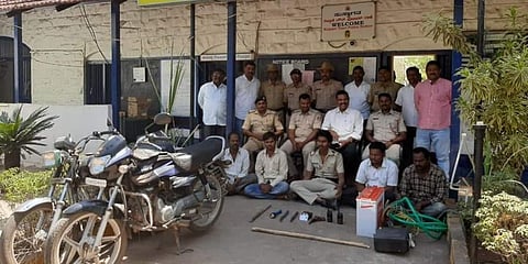 ಕಳೆದ ಮಂಗಳವಾರ ರಾತ್ರಿ ಈ ಐವರು ಅನುಮಾನಾಸ್ಪದ ವ್ಯಕ್ತಿಗಳನ್ನು ಪೊಲೀಸರು ಬಂಧಿಸಿದ್ದು, ಬಂಧಿತರಿಂದ ಒಟ್ಟು ರೂ.55,000 ಮೌಲ್ಯದ ಎರಡು ಬೈಕು, ಚಾಕುಗಳು, ನಕಲಿ ಪಿಸ್ತೂಲ್, ಬಿದಿರಿನ ಬಡಿಗೆಗಳು, ಖಾರದ ಪುಡಿ, ಹಗ್ಗ, ಟಾರ್ಚ್ ಹಾಗೂ ಮಹಾರಾಷ್ಟ್ರ ಪೊಲೀಸರ ಸಮವಸ್ತ್ರವನ್ನು ಹೋಲುವ ಖಾಕಿ ಶರ್ಟ್, ಪ್ಯಾಂಟ್, ಬೆಲ್ಟ್, ಬೂಟ್ ಮತ್ತು ನಕಲಿ ಐಡಿ ಕಾರ್ಡ್ ಜಪ್ತಿ ಮಾಡಿದ್ದಾರೆ.