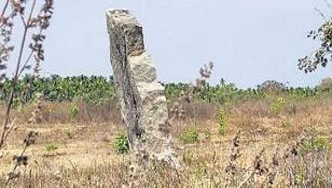ಭಾದ್ರಾವತಿ ತಾಲ್ಲೂಕಿನಲ್ಲಿ ಅರಣ್ಯ ಭೂಮಿಯ ಗಡಿಯ ಬೇಲಿಯೊಂದರಲ್ಲಿ ಇಂತಹ ಪುರಾತನ ಶಿಲೆಯು ಕಂಡುಬಂದಿದೆ. ಸ್ಥಳೀಯ ಜನರಿಗೆ ತಮ್ಮ ಸುತ್ತಮುತ್ತಲಿನ ಅಂತಹ ಮಹತ್ವದ ಐತಿಹಾಸಿಕ ಸ್ಥಳದ ಬಗೆಗೆ ಅರಿವಿಲ್ಲ. 7.5 ಅಡಿ ಎತ್ತರದ ಕಲ್ಲು ಬದಲಾಗುತ್ತಿರುವ ಭೂ ಮಾದರಿಗಳು ಮತ್ತು ನಗರೀಕರಣದ ಮಧ್ಯೆ ಕಳೆದ ಸಮಯದ ಸಾಕ್ಷಿಯಾಗಿ ನಿಂತಿದೆ. ಇನ್ನೂ ರೇಡಿಯೊ-ಕಾರ್ಬನ್ ಡೇಟ್ ಹೊಂದಿಲ್ಲವಾದರೂ ಇದು 3,000 ವರ್ಷಗಳಿಗಿಂತಲೂ ಹಳೆಯದು ಎಂದು ಅಂದಾಜಿಸಲಾಗಿದೆ. ಈ ಕಲ್ಲಿನ ಸುತ್ತಲೂ ಒಂದು ದೊಡ್ಡ ನೈಸರ್ಗಿಕ ಬಂಡೆಯನ್ನು ಸಹ ನೋಡಬಹುದು ಅಂದರೆ ಇದರ ಮೇಲೆ ಅದನ್ನು ಕೆತ್ತಿರಬೇಕು.