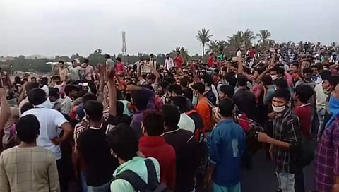ಬೆಂಗಳೂರು: ನಮ್ಮನ್ನು ನಮ್ಮ ರಾಜ್ಯಕ್ಕೆ ಕಳುಹಿಸಿ ಕೊಡಿ ಎಂದು ಬಿಹಾರಿ ಕಾರ್ಮಿಕರು ಗಲಾಟೆ ಮಾಡುತ್ತಿರುವುದನ್ನು ನಿಯಂತ್ರಿಸಲು ಮಾದನಾಯಕನಹಳ್ಳಿ ಸರ್ಕಲ್ ಇನ್ಸ್ ಪೆಕ್ಟರ್ ಸತ್ಯನಾರಾಯಣ ರಾಷ್ಟ್ರಗೀತೆ ಹಾಡಿ ಅವರನ್ನು ಸಮಾಧಾನ ಪಡಿಸಿರುವುದು ಸಾಮಾಜಿಕ ಜಾಲತಾಣದಲ್ಲಿ ವೈರಲ್ ಆಗಿದೆ.