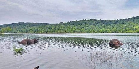 ಅದರಲ್ಲಿ ಎರಡು ಆನೆಗಳು ಕೆರೆಯ ಮಧ್ಯಭಾಗಕ್ಕೆ ತೆರಳಿವೆ. ಕೆರೆಯ ಮಧ್ಯದಲ್ಲಿ ಹಾದುಹೋಗಿರುವ ವಿದ್ಯುತ್ ತಂತಿ ತಗುಲಿದ ಪರಿಣಾಮ ಎರಡೂ ಆನೆಗಳು ಸ್ಥಳದಲ್ಲಿಯೇ ಸಾವನ್ನಪ್ಪಿವೆ. ಶನಿವಾರ ಮಧ್ಯಾಹ್ನ ಘಟನೆ ಬೆಳಕಿಗೆ ಬಂದಿದೆ.