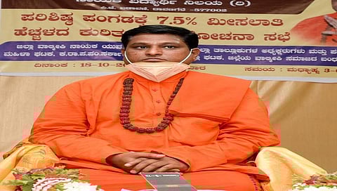 ದಾವಣಗೆರೆ: ತಾವು ನೀಡಿರುವ ಬೇಡಿಕೆಗಳನ್ನು ಈಡೇರಿಸದಿದ್ದರೇ ಕಾಂಗ್ರೆಸ್-ಜೆಡಿಎಸ್ ಅನುಭವಿಸಿದ ಸ್ಥಿತಿಯೇ ನಿಮಗೂ ಬರಲಿದೆ ಎಂದು ಬಿಜೆಪಿ ಸರ್ಕಾರಕ್ಕೆ ವಾಲ್ಮೀಕಿ ಗುರುಪೀಠದ ಪ್ರಸನ್ನಾನಂದಪುರಿ ಸ್ವಾಮಿ ಎಚ್ಚರಿಕೆ ನೀಡಿದ್ದಾರೆ.
