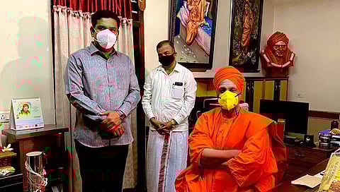 ತುಮಕೂರು: ಉಪಚುನಾವಣೆ ಹತ್ತಿರಬರುತ್ತಿದ್ದು, ರಾಜ್ಯದ ಪ್ರಮುಖ ಮೂರು ಪಕ್ಷಗಳ ಪ್ರಚಾರ ಕಾರ್ಯ ಬಿರುಸುನಿಂದ ಸಾಗುತ್ತಿದೆ. ಈ ನಡುವಲ್ಲೇ ಬಿಜೆಪಿ ರಾಜ್ಯ ಉಪಾಧ್ಯಕ್ಷ ವಿ.ವೈ ವಿಜಯೇಂದ್ರ ಅವರು ಶನಿವಾರ ತುಮಕೂರಿನ ಸಿದ್ದಗಂಗಾ ಮಠಕ್ಕೆ ದಿಢೀರ್ ಭೇಟಿ ನೀಡಿದ್ದು, ಶ್ರೀಗಳ ಆಶೀರ್ವಾದ ಪಡೆದುಕೊಂಡರು.
