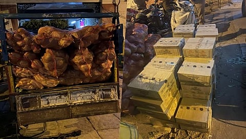 ಪೊಲೀಸರು ರಾತ್ರಿ ಗಸ್ತಿನಲ್ಲಿದ್ದಾಗ ತರಕಾರಿ ಚೀಲಗಳ ಕೆಳಗೆ ಬಚ್ಚಿಟ್ಟು ಸಾಗಿಸಲಾಗುತ್ತಿದ್ದ 509 ಲೀಟರ್ ಅಕ್ರಮ ಮದ್ಯ ವಶಪಡಿಸಿಕೊಳ್ಳಲಾಗಿದೆ ಎಂದು ಪಶ್ಚಿಮ ವಿಭಾಗದ ಡಿಸಿಪಿ ಡಾ.ಸಂಜೀವ್ ಪಾಟೀಲ್ ತಿಳಿಸಿದ್ದಾರೆ.