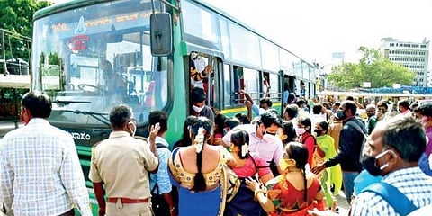 ಬೆಂಗಳೂರು: ಕೋವಿಡ್ 19 ಸಾಂಕ್ರಾಮಿಕದ ನಡುವೆಯೇ ಸೋಂಕು ಪ್ರಕರಣಗಳು ಕಡಿಮೆಯಾದ ಹಿನ್ನಲೆಯಲ್ಲಿ ಸರ್ಕಾರ ನಿರ್ಬಂಧಗಳನ್ನು ಸಡಿಲಿಸಿದ ಮೊದಲ ದಿನವೇ ಬೆಂಗಳೂರು ಜನತೆ ಸಾಮಾಜಿಕ ಅಂತರ ಪಾಲನೆಯನ್ನು ಮರೆತಂತಿತ್ತು.