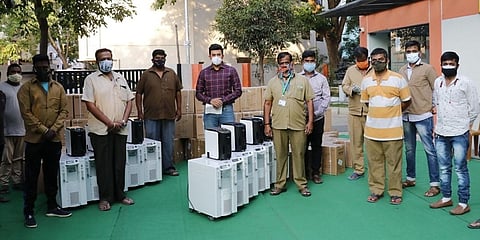 ಬೆಂಗಳೂರು: ಕೋವಿಡ್ ಸೋಂಕಿತರಿಗೆ ಅನುಕೂಲವಾಗುವ ನಿಟ್ಟಿನಲ್ಲಿ 250 ಯೂನಿಟ್ ಗಳ ಆಕ್ಸಿಜನ್ ಕಾನ್ಸನ್ಟ್ರೇಟರ್ ಬ್ಯಾಂಕ್ ಗೆ ಬೆಂಗಳೂರು ದಕ್ಷಿಣ ಸಂಸದ ತೇಜಸ್ವೀ ಸೂರ್ಯ ಭಾನುವಾರ ಚಾಲನೆ ನೀಡಿದರು.
