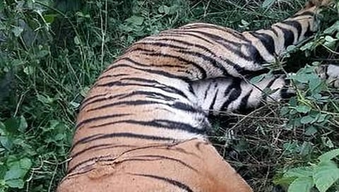 ಕಂದಕದ ಬಳಿ ಹುಲಿಯ ಕಳೇಬರ ಕಂಡುಬಂದಿದೆ ಎಂದು ಅರಣ್ಯಾಧಿಕಾರಿಗಳು ತಿಳಿಸಿದ್ದಾರೆ.