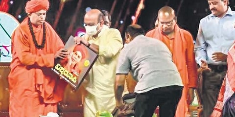 ಚಿತ್ರದುರ್ಗ: ಶ್ರೀ ಮುರುಘಾ ಮಠ ಸೋಮವಾರ ಐತಿಹಾಸಿಕ ಕ್ಷಣಕ್ಕೆ ಸಾಕ್ಷಿಯಾಯಿತು. ಮಠಾಧೀಶರಾಗಿ ಡಾ. ಶಿವಮೂರ್ತಿ ಮುರುಘಾ ಶರಣರು 30 ವರ್ಷಗಳನ್ನು ಪೂರೈಸಿದ್ದಾರೆ. ಆ ಪ್ರಯುಕ್ತ ಹಮ್ಮಿಕೊಂಡಿದ್ದ ಗುರುವಂದನಾ ಕಾರ್ಯಕ್ರಮದಲ್ಲಿ ವಿಶ್ವರೂಪಿ ಡಾ.ಶಿವಮೂರ್ತಿ ಮುರುಘಾ ಶರಣರು ಕಾಫಿ ಟೇಬಲ್ ಪುಸ್ತಕವನ್ನು ಲೋಕಾರ್ಪಣೆಗೊಳಿಸಲಾಯಿತು. ಈ ಕಾಫಿ ಟೇಬಲ್ ಪುಸ್ತಕವನ್ನು ನ್ಯೂ ಇಂಡಿಯನ್ ಎಕ್ಸ್ ಪ್ರೆಸ್ ಹೊರತಂದಿದೆ.