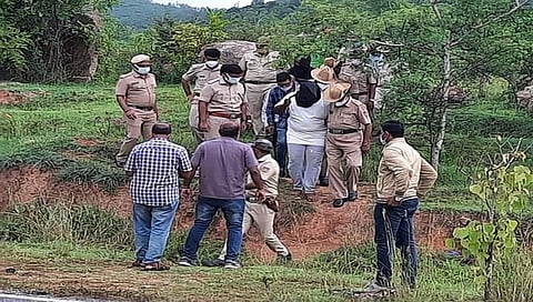 ಸ್ಥಳ ಮಹಜರು ನಡೆಸಲು ಬಂಧಿತ ಆರೋಪಿಗಳನ್ನು ಅತ್ಯಾಚಾರ ನಡೆದ ಸ್ಥಳಕ್ಕೆ ಕರೆತಂದ ಪೊಲೀಸರು