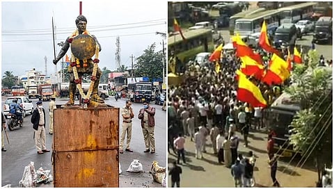 ಬೆಳಗಾವಿಯಲ್ಲಿ ಪರಿಸ್ಥಿತಿ ಕ್ಷಣದಿಂದ ಕ್ಷಣಕ್ಕೆ ಉದ್ವಿಗ್ನವಾಗುತ್ತಿದೆ. ಪುಂಡರು ನಿನ್ನೆ ನಸುಕಿನ ಜಾವ ಧ್ವಂಸಗೊಳಿಸಿದ್ದ ಸಂಗೊಳ್ಳಿ ರಾಯಣ್ಣ ಪ್ರತಿಮೆಯನ್ನು ಸರಿಪಡಿಸಿ ಸ್ಥಳೀಯರು ಇಂದು ಭಾನುವಾರ ಪುನರ್ ಪ್ರತಿಷ್ಠಾಪಿಸಿದ್ದಾರೆ.