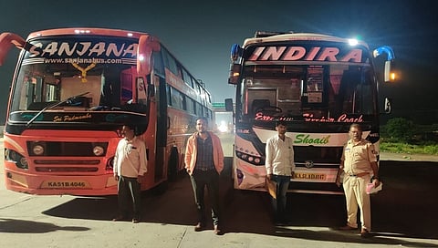 ಬೆಂಗಳೂರು: ರಾಜ್ಯದ ವಿವಿಧ ಭಾಗಗಳ ಆರ್.ಟಿ.ಒ ಅಧಿಕಾರಿಗಳಿಂದ, ಹೆಚ್ಚು ದರ ವಿಧಿಸುತ್ತಿರುವ ಖಾಸಗಿ ಬಸ್ ತಪಾಸಣೆ ಹಾಗೂ ಕಾರ್ಯಾಚರಣೆ ಮಾಡುತ್ತಿರುವುದಾಗಿ ಸಾರಿಗೆ ಇಲಾಖೆ ಇಂದು ವಿವಿಧ ಬಸ್ಸುಗಳ ಮುಂದೆ ಸಿಬ್ಬಂದಿ ನಿಂತ ಚಿತ್ರಗಳನ್ನು ಟ್ವೀಟ್ ಮಾಡಿದೆ.