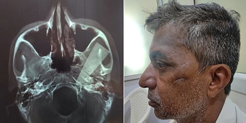 ಕಳೆದ ಏಪ್ರಿಲ್ 18 ರಂದು ಉತ್ತರ ಕನ್ನಡ ಜಿಲ್ಲೆಯ ಹಳಿಯಾಳ ತಾಲೂಕಿನ ಕೆ.ಕೆ.ಹಳ್ಳಿಯ ಭೀಮರಾವ್ ಚೌಹಾಣ್ (48) ಅವರ ಮುಖಕ್ಕೆ ಹರಿತವಾದ ಚಾಕುವಿನಿಂದ ಪಕ್ಕದ ಮನೆಯವರು ಇರಿದಿದ್ದರು. ಚಾಕು 20 ದಿನಗಳ ಕಾಲ ಅವರ ಮುಖದ ದವಡೆಯಲ್ಲಿಯೇ ಉಳಿದಿತ್ತು. ಮೊದಲಿಗೆ ಹಳಿಯಾಳ ತಾಲೂಕು ಆಸ್ಪತ್ರೆಯಲ್ಲಿ ಚಿಕಿತ್ಸೆ ಕೊಡಿಸಿ ಧಾರವಾಡ ಜಿಲ್ಲಾಸ್ಪತ್ರೆಗೆ ರವಾನಿಸಿದ ವೈದ್ಯರು ಚಾಕುವನ್ನು ಸಂಪೂರ್ಣವಾಗಿ ಹೊರತೆಗೆಯಲು ಸಾಧ್ಯವಾಗಲಿಲ್ಲ. ಬಳಿಕ ಹುಬ್ಬಳ್ಳಿಯ ಕಿಮ್ಸ್ ಆಸ್ಪತ್ರೆಗೆ ಜೂನ್ 3ರಂದು ಕರೆತಂದಿದ್ದರು.