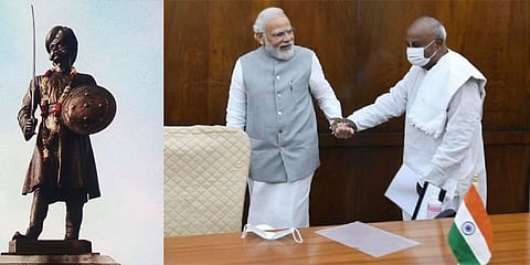 ದೇವನಹಳ್ಳಿಯ ಕೆಂಪೇಗೌಡ ಅಂತಾರಾಷ್ಟ್ರೀಯ ಏರ್ಪೋರ್ಟ್ನಲ್ಲಿ ಕೆಂಪೇಗೌಡರ 108 ಅಡಿಯ ಪ್ರತಿಮೆ (Kempegowda statue) ನಿರ್ಮಾಣವಾಗಿದ್ದು, ನವೆಂಬರ್ 11 ರಂದು ಉದ್ಘಾಟನೆಯಾಗಲಿದೆ. ಇದರ ಬೆನ್ನಲ್ಲೇ ಸಂಸತ್ ಭವನದ ಆವರಣದಲ್ಲಿ ಕೆಂಪೇಗೌಡರ ಕಂಚಿನ ಪುತ್ಥಳಿ ಸ್ಥಾಪಿಸುವಂತೆ ಪ್ರಧಾನಮಂತ್ರಿ ನರೇಂದ್ರ ಮೋದಿಗೆ ಮಾಜಿ ಪ್ರಧಾನಿ ಹೆಚ್.ಡಿ.ದೇವೇಗೌಡ ಮನವಿ ಮಾಡಿಕೊಂಡಿದ್ದಾರೆ.