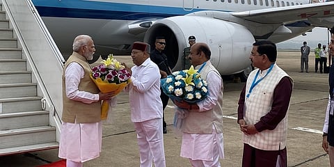 ಬೆಂಗಳೂರು: ರಾಜಧಾನಿ ಬೆಂಗಳೂರಿಗೆ ಪ್ರಧಾನ ಮಂತ್ರಿ ನರೇಂದ್ರ ಮೋದಿ ಬಂದಿಳಿದಿದ್ದಾರೆ. ಹೆಚ್ ಎಎಲ್ ವಿಮಾನ ನಿಲ್ದಾಣದಲ್ಲಿ ಬಂದಿಳಿದ ಪ್ರಧಾನಿಯವರನ್ನು ರಾಜ್ಯಪಾಲ ತ್ಯಾವರ್ ಚಂದ್ ಗೆಹ್ಲೊಟ್, ಮುಖ್ಯಮಂತ್ರಿ ಬಸವರಾಜ ಬೊಮ್ಮಾಯಿ ಸೇರಿದಂತೆ ಅವರ ಸಂಪುಟ ಸದಸ್ಯರು ಬರಮಾಡಿಕೊಂಡಿದ್ದಾರೆ. ಈ ವೇಳೆ ಕೇಂದ್ರ ಸಚಿವ ಪ್ರಹ್ಲಾದ್ ಜೋಷಿ, ರಾಜ್ಯ ಬಿಜೆಪಿ ಉಸ್ತುವಾರಿ ಅರುಣ್ ಸಿಂಗ್ ಮೊದಲಾದವರಿದ್ದರು.