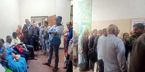 ಹಲವಾರು ಹಿರಿಯ ನಾಗರಿಕರು, ವಿಶೇಷಚೇತನರು ಮತ್ತು ಗರ್ಭಿಣಿಯರು ಎರಡು ಸರತಿ ಸಾಲಿನಲ್ಲಿ ಕಾಯುತ್ತಿದ್ದಾರೆ. ಒಬ್ಬರು ಬೆಳಿಗ್ಗೆ 9.30 ರಿಂದ 10.30 ರ ನಡುವೆ ಮಾತ್ರ ನೀಡಲಾದ ಟೋಕನ್ ಪಡೆಯಲು ನೆಲ ಮಹಡಿಯಲ್ಲಿ ಮತ್ತು ಇನ್ನೊಂದು ಸಾಲು ಎರಡನೇ ಮಹಡಿಯಲ್ಲಿ ಅರ್ಜಿ ನಮೂನೆಯನ್ನು ಸಂಗ್ರಹಿಸಲು ನಿಂತಿರುತ್ತದೆ, ಇದು ದಿನವಿಡೀ ತೆರೆದಿರುತ್ತದೆ. ಗಂಟೆಗಟ್ಟಲೆ ಸರತಿ ಸಾಲಿನಲ್ಲಿ ನಿಲ್ಲುವ ಪರಿಸ್ಥಿತಿಯಿರುವಾಗ ಶೌಚಾಲಯ ವ್ಯವಸ್ಥೆಯಿಲ್ಲದೆ ಕಚೇರಿಗಳಲ್ಲಿ ವಿಶ್ರಾಂತಿ ಕೊಠಡಿಗಳನ್ನು ಬಳಸಲು ಒತ್ತಾಯಿಸಲಾಗುತ್ತದೆ.