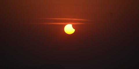 ಬೆಂಗಳೂರು: ದೀಪಾವಳಿ ಅಮಾವಾಸ್ಯೆ ದಿನ (ಅ.25) ರಂದು ಸೂರ್ಯ ಗ್ರಹಣ ಸಂಭವಿಸಿದ್ದು, ರಾಜ್ಯದ ಹಲವು ನಗರಗಳಲ್ಲಿ ಭಾಗಶಃ ಗ್ರಹಣ ಗೋಚರವಾಗಿದೆ.