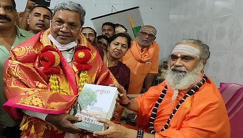 ಮಾತಿನ ಶೈಲಿಯಲ್ಲಿ ಮೃದು ಧೋರಣೆ ಇರಲಿ ಎಂದು ಸಲಹೆ ನೀಡಿದ್ದೇನೆ’ ಎಂದು ಸ್ವಾಮೀಜಿ ಹೇಳಿದರು. ಮಠವು ಎಲ್ಲಾ ಪಕ್ಷದ ನಾಯಕರನ್ನು ಸಮಾನವಾಗಿ ಪರಿಗಣಿಸುತ್ತದೆ ಎಂದು ಮಠಾಧೀಶರು ಹೇಳಿದರು. ಕಾಶಿಯಿಂದ ತಂದಿದ್ದ ಸಣ್ಣ ರುದ್ರಾಕ್ಷಿ ಹಾರವನ್ನು ಸಿದ್ದರಾಮಯ್ಯ ಅವರ ಕೊರಳಿಗೆ ಹಾಕಿದ ಶ್ರೀಗಳು, ‘ಇದನ್ನು ಕಾಶಿಯಿಂದ ತಂದಿದ್ದು ಚುನಾವಣೆವರೆಗೂ ಹಾಕಿಕೊಳ್ಳಿ’ ಎಂದು ಸಲಹೆ ನೀಡಿದರು.
