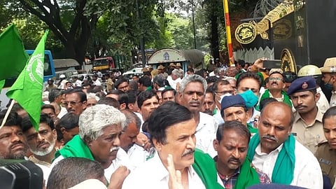 ಬೆಂಗಳೂರು: ರಾಜ್ಯದ ರೈತರ ಸಾಲ ನೀತಿ ಬದಲಾಯಿಸಿ ಕೃಷಿ ಸಾಲಕ್ಕೆ ಸಿಬಿಲ್ ಸ್ಕೋರ್ ರದ್ದುಗೊಳಿಸಲು ಒತ್ತಾಯಿಸಿ ಆರ್ ಬಿ ಐ ಮುಂದೆ ರೈತರು ಪ್ರತಿಭಟನೆ ನಡೆಸಿದರು.