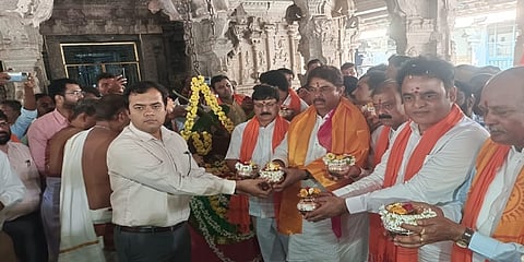 ಹಂಪಿ ವಿರೂಪಾಕ್ಷೇಶ್ವರ, ಭುವನೇಶ್ವರಿ ದೇವಿಗೆ ವಿಶೇಷ ಪೂಜೆ ನೆರವೇರಿಸಿದ ಸಚಿವರು, ಬಳಿಕ ಮಣ್ಣು ಸಂಗ್ರಹಿಸಿದರು. ನಾಡಪ್ರಭು ಕೆಂಪೇಗೌಡ, ಶ್ರೀ ಕೃಷ್ಣದೇವರಾಯನ ಹೆಸರಲ್ಲಿ ಅರ್ಚನೆ ಮಾಡಿಸಿದರು.