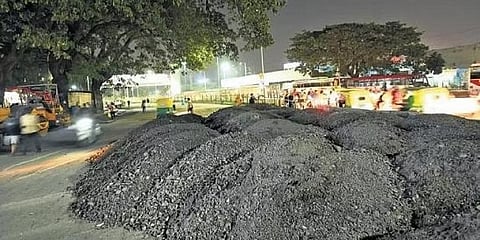 ರೈಲು ನಿಲ್ದಾಣದ ಬಳಿ ವೈಟ್ ಟಾಪಿಂಗ್ ಕಾಮಗಾರಿ ನಡೆಯುತ್ತಿರುವುದು.