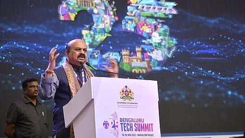 ಬೆಂಗಳೂರು ಅರಮನೆ ಮೈದಾನದಲ್ಲಿ ಆಯೋಜಿಸಿರುವ ಬೆಂಗಳೂರು ಟೆಕ್ ಸಮ್ಮಿಟ್‍ನ 25ನೇ ಆವೃತ್ತಿಯನ್ನು ಉದ್ಘಾಟಿಸಿ ಮಾತನಾಡಿದ ಸಿಎಂ ಬೊಮ್ಮಾಯಿ.