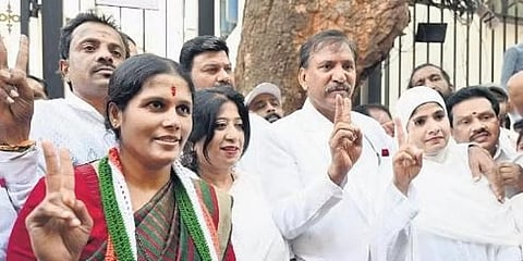 ಗಂಗಾಂಬಿಕೆ ನಾಮಪತ್ರ ಸಲ್ಲಿಕೆ ಕುರಿತು ಪ್ರತಿಕ್ರಿಯೆ ನೀಡಿದ ಕೆಪಿಸಿಸಿ ಅಧ್ಯಕ್ಷ ಡಿಕೆ ಶಿವಕುಮಾರ್ ಅವರು, ಗಂಗಾಂಬಿಕೆ ಪಕ್ಷದ ನಿಷ್ಠಾವಂತ ಕಾರ್ಯಕರ್ತೆ. ಪಕ್ಷ ಅವರನ್ನು ಅಭ್ಯರ್ಥಿಯಾಗಿ ಪರಿಗಣಿಸದಿದ್ದರೆ, ನಾಮಪತ್ರ ಹಿಂಪಡೆಯುವಂತೆ ಕೇಳಿಕೊಳ್ಳಬೇಕಾಗಬಹುದು ಎಂದು ಹೇಳಿದ್ದಾರೆ.