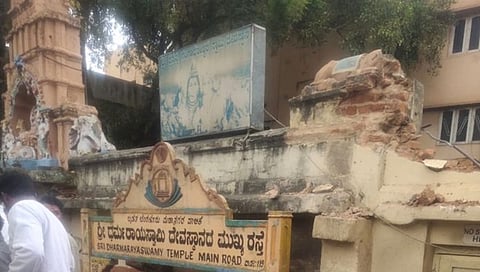 ಬೆಂಗಳೂರು: ಪುಟ್ಪಾತ್ ತೆರವು ಮಾಡುತ್ತೇವೆಂದು ಬಂದ ಬಿಬಿಎಂಪಿ ಸಿಬ್ಬಂದಿಗಳು ಚಿಕ್ಕಪೇಟೆ ವಿಧಾನಸಭೆಯಲ್ಲಿರುವ ಇರುವ ಇತಿಹಾಸ ಪ್ರಸಿದ್ಧ ಶ್ರೀ ಜಲಕಂಠೇಶ್ವರ ದೇವಸ್ಥಾನವನ್ನು ಕೆಡವಿ ಹಾಕಿದ್ದಾರೆ.