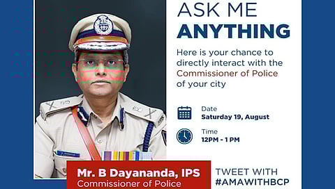 #AMWITHBCP ಎಂಬ ಹ್ಯಾಷ್ಟ್ಯಾಗ್ ಮೂಲಕ ಜನರು ನಗರ ಪೊಲೀಸ್ ಆಯುಕ್ತರಿಗೆ ಪ್ರಶ್ನೆಗಳನ್ನು ಕೇಳಿದ್ದು, ಹಲವು ಪ್ರಶ್ನೆಗಳಿಗೆ ಸ್ವತಃ ಬಿ ದಯಾನಂದ್ ಉತ್ತರ ನೀಡಿದರು. ಶನಿವಾರ ಮಧ್ಯಾಹ್ನ 12 ಗಂಟೆಯಿಂದ ಒಂದು ಗಂಟೆಯವರೆಗೆ ಸಂವಾದ ನಡೆಯಿತು. ಈ ವೇಳೆ ಸಾರ್ವಜನಿಕರ ಪ್ರಶ್ನೆಗಳಿಗೆ ಉತ್ತರ ನೀಡಿ ಆಯುಕ್ತರು ನಗರದ ಜನತೆಯ ಗಮನ ಸೆಳೆದರು.