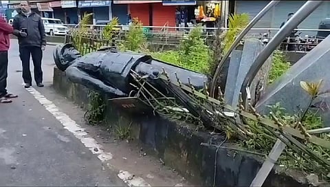 ಮಡಿಕೇರಿ: ಸೋಮವಾರ ನಸುಕಿನ ವೇಳೆ ಸಂಭವಿಸಿದ ರಸ್ತೆ ಅಪಘಾತದಲ್ಲಿ ದಿವಂಗತ ಜನರಲ್ ಕೆ.ಎಸ್.ತಿಮ್ಮಯ್ಯ ಅವರ ಪ್ರತಿಮೆಗೆ ಧಕ್ಕೆಯಾಗಿದೆ. ಹಿಂದಿನ ವರ್ಷಗಳಲ್ಲಿ ಸಾಕಷ್ಟು ಹೋರಾಟದ ನಂತರ ಸ್ಥಾಪಿಸಲಾದ ಈ ಪ್ರತಿಮೆ ಸುಮಾರು 50 ವರ್ಷ ಹಳೆಯದು. ವೇಗವಾಗಿ ಬಂದ ಕೆಎಸ್ಆರ್ಟಿಸಿ ಬಸ್ ಪ್ರತಿಮೆ ಇದ್ದ ವೃತ್ತಕ್ಕೆ ಡಿಕ್ಕಿ ಹೊಡೆದ ಪರಿಣಾಮ ಅದು ಕೆಳಗೆ ಬಿದ್ದಿದೆ.