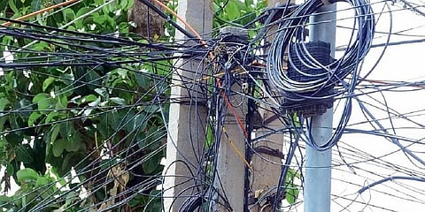 ರಸ್ತೆಗಳಲ್ಲಿರುವ ಮರದ ಕೊಂಬೆಗಳಲ್ಲಿ ಹೆಬ್ಬಾವಿನಂತೆ ಸುತ್ತಿಕೊಂಡಿದ್ದು, ಲೈಟ್ ಕಂಬಗಳಲ್ಲೂ ಕೇಬಲ್ ಗಳ ಗೊಂಚಲುಗಳು ನೇತಾಡುತ್ತಿದ್ದು, ಕಳೆದ ವಾರ ಎರಡು ಮಾರಣಾಂತಿಕ ಅಪಘಾತಗಳಿಗೆ ಕಾರಣವಾಗಿವೆ.