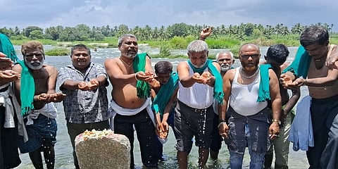 ಶ್ರೀರಂಗಪಟ್ಟಣದಲ್ಲಿ ರೈತರು ಅಂಗಿ ತೆಗೆದು ಅರೆಬೆತ್ತಲು ಮೆರವಣಿಗೆ, ಪ್ರತಿಭಟನೆ ನಡೆಸಿದರು. ಕಾವೇರಿ ನದಿಯಲ್ಲಿ ನಿಂತು ಅಂಗೈಯಲ್ಲಿ ನೀರು ಹಿಡಿದುಕೊಂಡು ರಾಜ್ಯ ಸರ್ಕಾರ ರೈತ ವಿರೋಧಿ ನಿಲುವು ತಳೆದಿದೆ ಎಂದು ಆಕ್ರೋಶ ವ್ಯಕ್ತಪಡಿಸಿದರು.