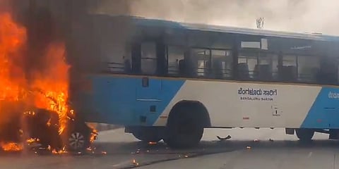 ಬೆಂಕಿ ಹೊತ್ತಿಕೊಂಡ ತಕ್ಷಣವೇ ಸಮಯ ಪ್ರಜ್ಞೆ ಪ್ರದರ್ಶಿಸಿದ ಬಸ್ ಚಾಲಕ, ಧಗಧಗನೆ ಹೊತ್ತಿ ಉರಿಯುತ್ತಿದ್ದ ಕಾರು ನಿಂತಿದ್ದ ಸ್ಥಳದಿಂದ ಬಸ್ ನ್ನು ಚಲಾಯಿಸಿಕೊಂಡು ಹೋಗಿದ್ದು, ಪ್ರಯಾಣಿಕರನ್ನು ಸುರಕ್ಷಿತವಾಗಿ ಹೊರಗೆ ಇಳಿಸಿದ್ದಾಗಿ ಸ್ಥಳದಲ್ಲಿದ್ದ ಪ್ರತ್ಯಕ್ಷದರ್ಶಿಗಳು ಸುದ್ದಿಗಾರರಿಗೆ ತಿಳಿಸಿದ್ದಾರೆ. ಈ ಘಟನೆ ನಡೆದಾಗ ಬಸ್ನಲ್ಲಿ ಅನೇಕ ಪ್ರಯಾಣಿಕರಿದ್ದರು ಎನ್ನಲಾಗಿದೆ.